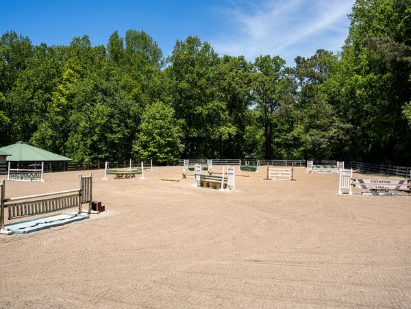 Riding facilities include a 130 x 225 ft outdoor arena and an 80 x 200 ft indoor arena, both with sand-based, Footings Unlimited Nike Blend footing that was updated in Fall 2023. Additionally, we have a covered and enclosed 60 ft lunging ring and an outdoor round pen.